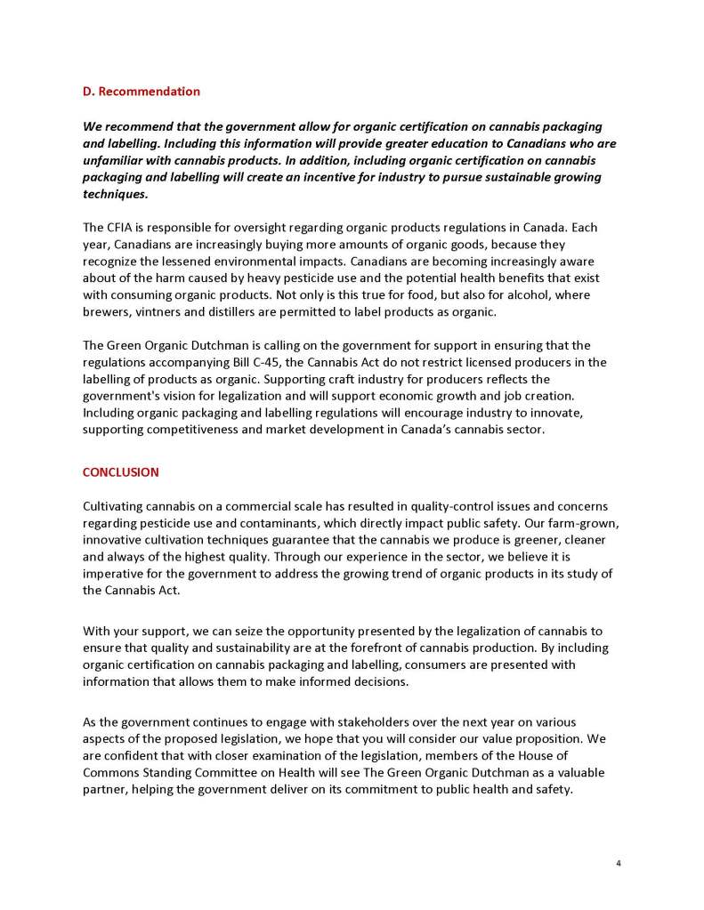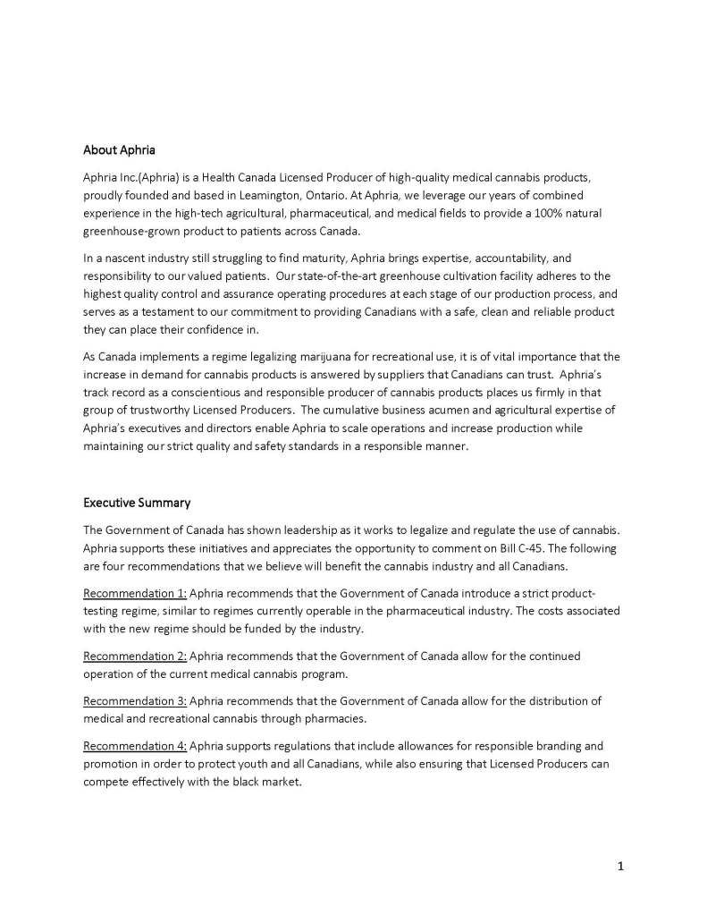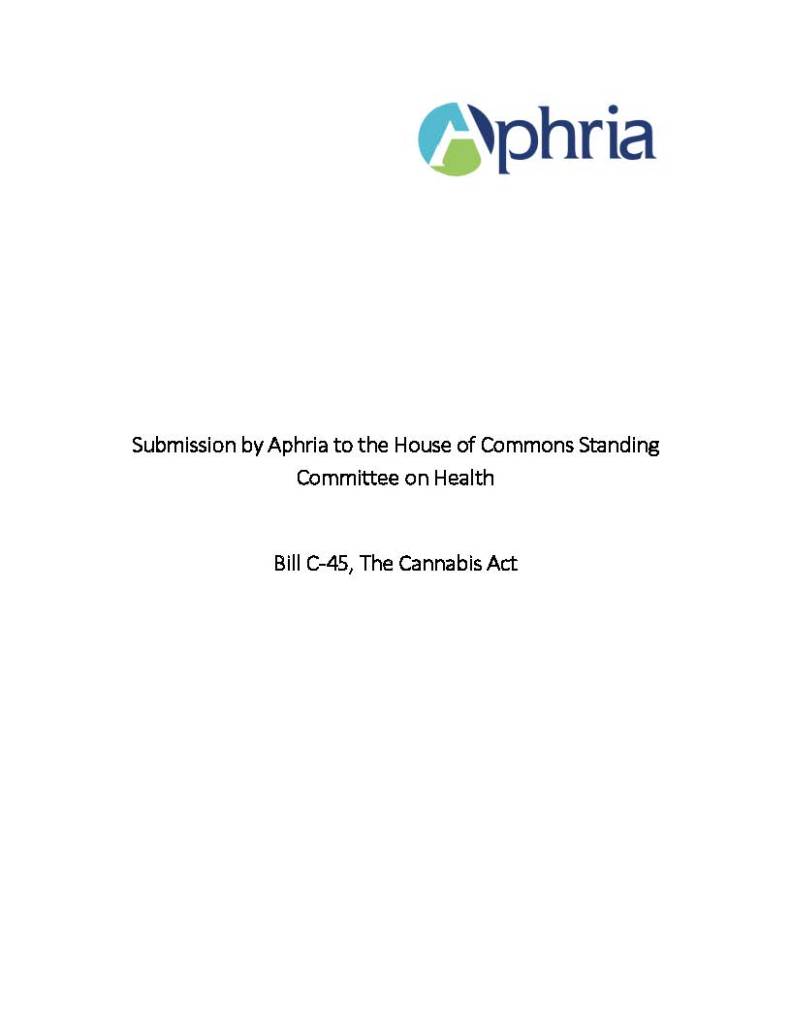 The Standing Committee on Health was in receipt of stakeholder feedback on Bill C-45. Pictured are excerpts from comments and feedback provided on the drafting of The Cannabis Act by The Green Organic Dutchman ($TGOD) and Aphria (now Tilray) ($TLRY). Submission by Mary DuRocher CEO of Fox D Consulting