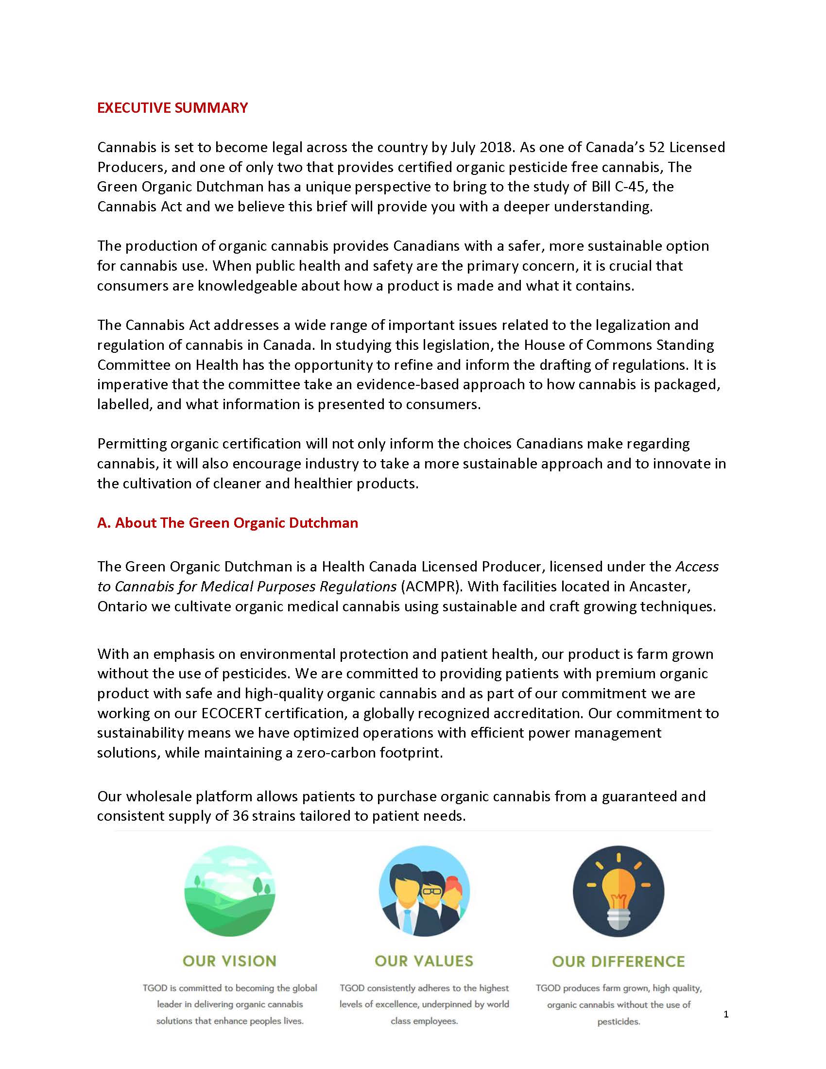 The Standing Committee on Health was in receipt of stakeholder feedback on Bill C-45. Pictured are excerpts from comments and feedback provided on the drafting of The Cannabis Act by The Green Organic Dutchman ($TGOD) and Aphria (now Tilray) ($TLRY). Submission by Mary DuRocher CEO of Fox D Consulting