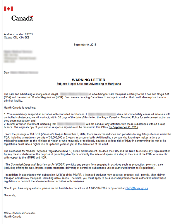 Enforcement letter RE: Advertising restrictions on medical cannabis, prior to recreational legalization in Canada. Submission by Mary DuRocher CEO of Fox D Consulting